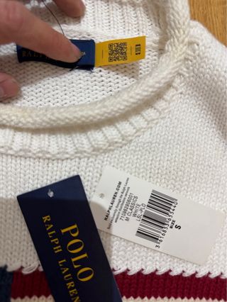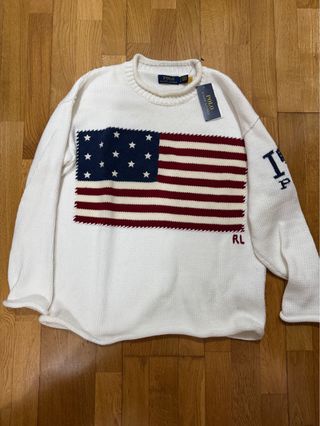 Suéter de punto con diseño de la bandera americana. Vendo jersey bandera ralph lauren talla s,modelo exclusivo del año pasado.Valor en tienda 400 euros .Es una S q equivale a una M.Factura de compra de la tienda Farfetch.Talla agotada sin stock . - Cuello redondo. - Mangas largas. - Detalle de RL bordado.