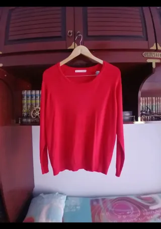 Jersey de manga larga con un diseño jaspeado. Color rojo muy bonito,no se aprecia bien el color en las fotos - Cuello redondo. - Tejido suave y cómodo.