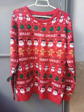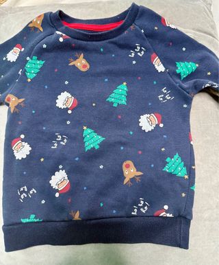 Jersey infantil con estampado navideño. Ideal para las fiestas. - Diseño con renos, Papá Noel y árboles de Navidad. - Cuello redondo y manga larga. - Puños y bajo elásticos. el rojo es de 86 cm marca c&A y el azul marca primark 92 cm