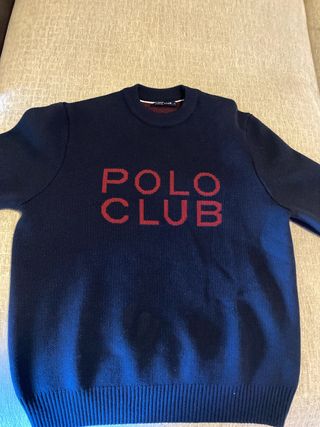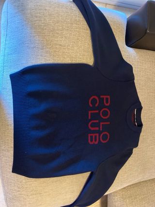 Jersey de punto de la marca Polo Club. - Color azul marino con letras rojas. - Cuello redondo.