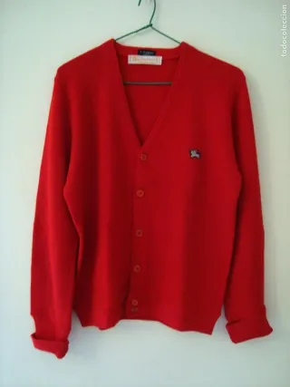Jersey abierto de punto para hombre de la marca Burberrys. - Mide 52 cm. de ancho de pecho y 62 cm.de largo total desde el hombro. - Color rojo vibrante. - Diseño clásico con cuello en V. - Cierre de botones. - Detalle de logo bordado en el pecho. - Prenda elegante y de gran calidad.