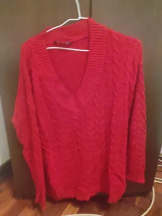 Jersey rojo de corte amplio, en perfecto estado. - Talla 38. - Color rojo vibrante. - Tejido suave y cómodo. Está nuevo