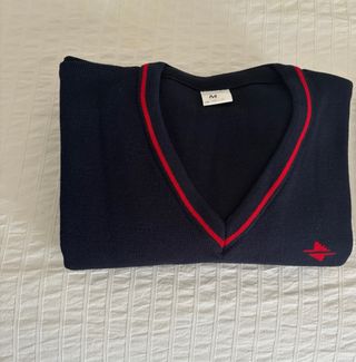 Jersey de punto de color rojo para colegio Padre Manyanet, talla 10. Está en buen estado. - Cuello pico con ribetes. - Logo bordado. - Puños con ribetes. 8 €