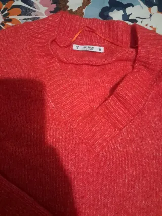 Jersey tipo oversize de punto de color rojo. Mide de sisa a sisa 70xm y de largo 67cm. Está usado en unas tres ocasiones manteniéndose en un buen estado.