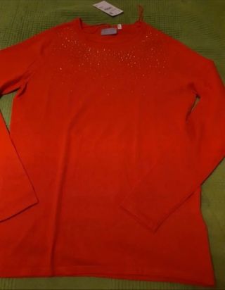 Jersey de punto fino con brillantes en el pecho. Talla M. Sin estrenar.