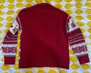 Jersey navideño con un divertido diseño de reno y el mensaje Merry Christmas. - Diseño de reno con detalles. - Mensaje Merry Christmas en la parte superior. - Adornos de bolas rojas y copos de nieve.