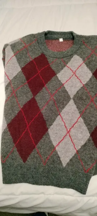 Jersey de rombos gris y rojo
