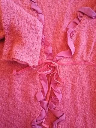 Jersey de punto en color rojo, con un diseño elegante y detalles de volantes. - Cuello con volantes. - Cierre de lazada con volantes. - Manga larga. - Corte acampanado.