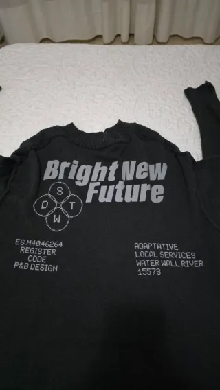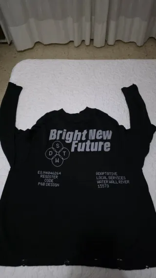 Jersey de Pull and Bear con diseño Bright New Future y detalles desgastados en el bajo. - Diseño gráfico frontal. - Cuello redondo. - Manga larga. - Acabado desgastado en el bajo.