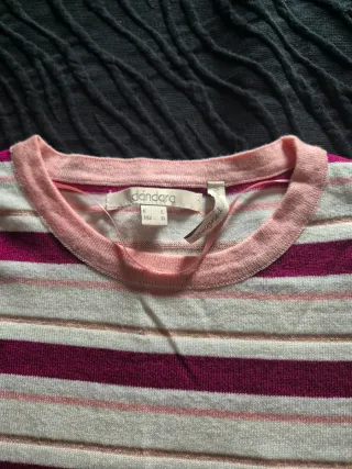 Jersey de punto con un diseño de rayas rojas y blancas. Es un jersey suave y con un acabado mullido. - Diseño de rayas horizontales. - Cuello redondo. - Manga larga. Precio 3.50 euros no negociables ◾ No acepto ofertas ◾ Solo venta por envios ◾ Envio en menos de 24 horas después de su compra.