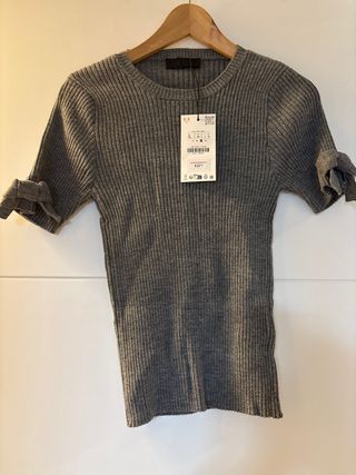 Jersey Zara gris con lazos en manga Talla L