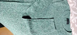Jersey verde canalé con cuello de pico, de la marca Sfera, talla L. Es muy agradable, un 65% de viscosa, muy cómodo y en bastante buen estado