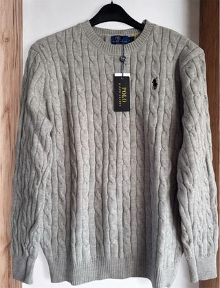 Jersey de punto trenzado de Polo Ralph Lauren en color gris. Un clásico atemporal para cualquier armario. - Diseño de punto trenzado. - Cuello redondo. - Logo del jugador de polo bordado en el pecho.
