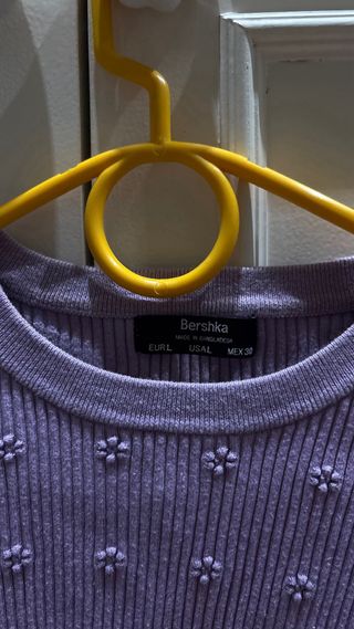 jersey/camiseta corto de punto lila de la marca Bershka con textura acanalada talla L en perfecto estado