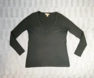 Jersey de punto fino de manga larga con cuello en V. Ideal para un look casual o elegante. - Tejido suave y ligero. - Acabado en canalé en puños y bajo. -Sin usar con etiqueta -Aunque pone talla 6, lo vendi porque no le queda bien a una persona con talla XL