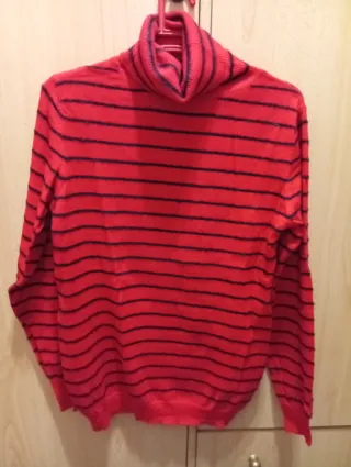 Jersey de punto fino con cuello alto. Talla L pero queda ajustado. Se podría considerar como si fuera una talla M Nuevo a estrenar No me interesa ningún tipo de cambio