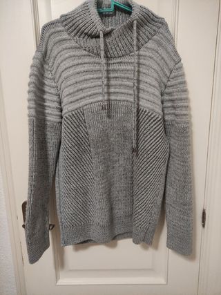 Jersey de punto. Color gris, cuello elevado. Talla L