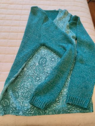 Jersey desigual. Talla M. es una M que talla como una L. Es calado, ideal entretiempo encima de una camiseta básica de tirantes. Muy poco uso porque me queda grande.