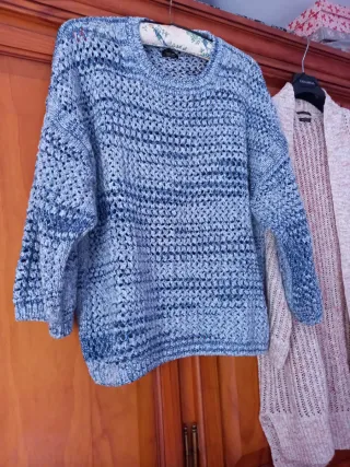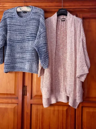 Conjunto de jersey y rebeca de Massimo Dutti. 15€ los dos - Jersey de punto grueso en color rosa. - Rebeca larga de punto fino en color verde.