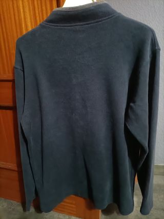 Jersey de algodón con cuello alto y media cremallera. - Diseño de canalé en puños y bajo. - Bolsillos laterales. - Detalle de logo en la parte inferior. Esta sin apenas uso.