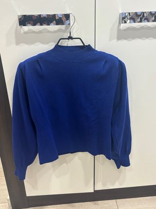 Jersey Mango azul mangas abullonadas talla L