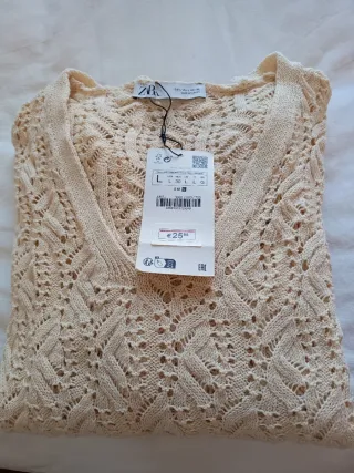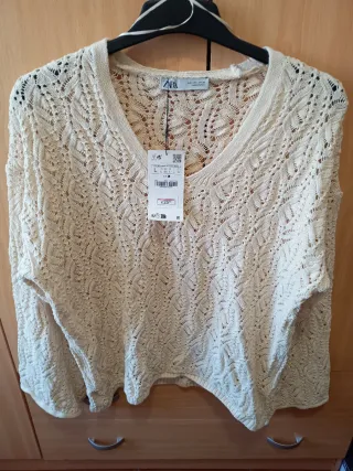 Jersey de punto calado de Zara. - Diseño con cuello en V. - Tejido ligero y transpirable.