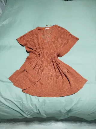 Jersey de punto fino con un diseño abierto y ligero. Ideal para usar sobre otra prenda o como accesorio de playa. Color teja - Tejido con textura. - Corte holgado. - Escote en V.