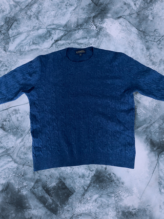 Marca: Brooks Brothers Material: Scottish Lambswool Cuello: redondo (crewneck) Tejido: cable knit (ochos) en todo el cuerpo y mangas Color: azul (navy / azul medio jaspeado) Talla: L Fabricación: Made in China NO ACEPTO ENVIO EN PERSONA, SOLO A TRAVES DE MENSAJERIA