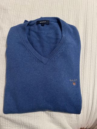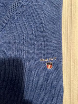 Jersey de pico de la marca Gant en color azul. Talla L. - Cuello en V. - Logo de Gant bordado en el pecho.