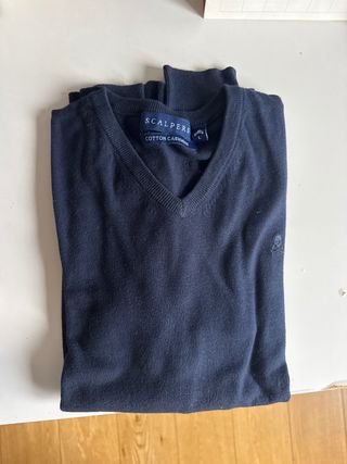Jersey Scalpers de punto fino con cuello en V. - Talla: L - Manga larga. - Bajo y puños elásticos. - Cuello en V ENTREGA EN MANO EN MADRID (GLORIETA DE QUEVEDO) PRECIO NO NEGOCIABLE