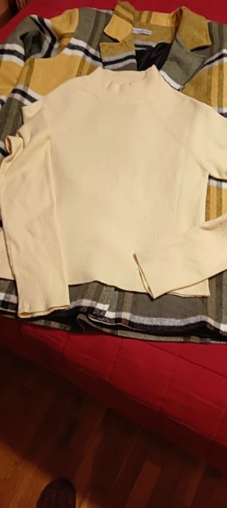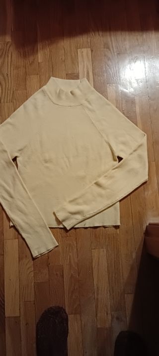 Jersey en color amarillo,cuello perkins y con un largo crop.Es elástico y se adapta a tu cuerpo genial aunque no sea tu talla.Calentito y gustoso.Talla L