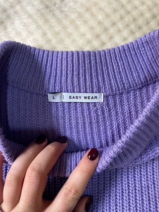 Jersey de punto fino en color morado. Es una prenda versátil y cómoda. - Tejido acanalado. - Cuello redondo. - Manga larga. - Bien conservado - Talla L