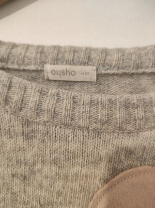 Precioso y super original. Gris jaspeado. 80 por ciento lana. Cómodo y calentito. Tiene dos pequeños cosidos que casi no se ven por el color del jersey