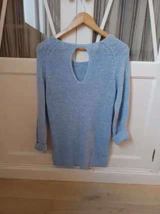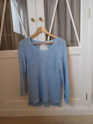 Jersey ligero de verano para mujer, perfecto para los días más cálidos. Su diseño es moderno y cómodo. Aunque pone talla 40 es 38-40 - Tejido de punto fino. - Escote abierto en la espalda. - Manga larga.