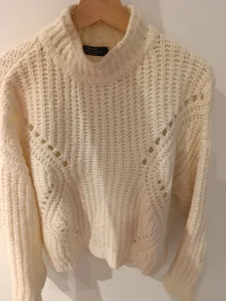 Jersey de punto con rayas marineras y cuello alto con detalle de botones dorados. Sfera talla S Jersey blanco muy suave Zara talla M. Están Impecables