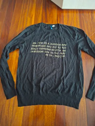 Jersey de manga larga de la marca H&M. - Diseño con texto estampado. - Cuello redondo. Talla XL ( mejor para L) medidas: hombro 45, axila 55, largo 62 cm