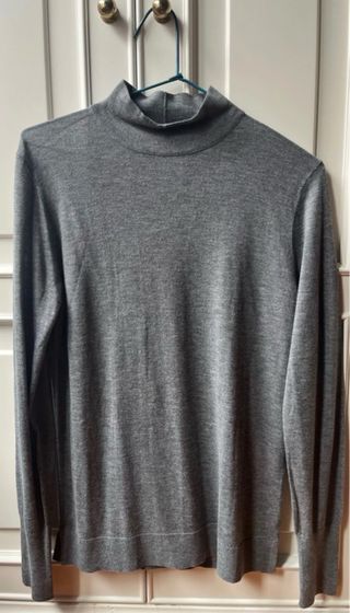 Jersey de punto fino con cuello alto. Marca: Easy Wear Talla: M Manga larga 50% viscosa, 50% acrilico Largo: 65 cm Pecho: 46,5 cm Hombro: 35 cm Largo mangas: 64 cm - Tejido suave y cómodo. - Diseño liso y versátil.