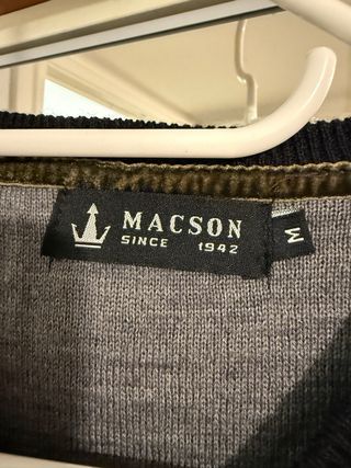 Se vende jersey de hombre talla M con cierre de dos botones con cuello cisne y coderas de ante en ambas mangas que le dan un toque muy interesante.