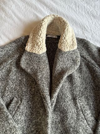 ℹ️ Chaqueta corta estilo cropped de color gris jaspeado con cuello de borreguillo ultra suave de color crema/beige, con dos bolsillos delanteros y cierre con dos botones a presión 🏷️ Mango 📏 Talla M 🪡 Poco uso, se encuentra en muy buen estado, sin imperfecciones 🧶 Le quité la etiqueta de composición por comodidad pero es como un jersey de punto de lana pero suave y agradable 📲 ¡No dudes en preguntarme cualquier cosa! 💰 Precio negociable 🧼 En la parte trasera del cuello y en el puño de las mangas tiene alguna pequeña mancha de desgaste (la del cuello no se ve porque lo tapa el borreguillo): ver últimas 2 fotos