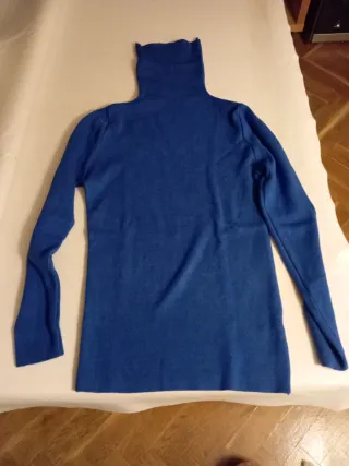 Jersey de punto azul eléctrico con un diseño moderno y cómodo. Me queda justo y me es más trabajo devolverlo que pedir otro. - Composición: 45% Viscosa, 27% Nylon, 28% Poliéster. - Talla M.