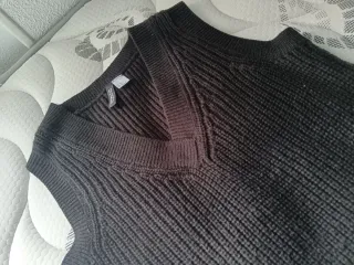 Jersey de punto fino con cuello en V y manga larga. Presenta un diseño con detalles de canalé y un corte acampanado. - Tejido de punto suave. - Diseño con escote en pico. - Manga larga. - Corte acampanado. Precio 4.50 euros no negociables ✔ No se aceptan ofertas. ✔ Solo venta a traves de envíos ✔ Contesto rápido y envío en menos de 24 horas