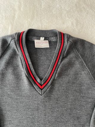 Jersey de punto de manga larga con cuello en V. - Tejido suave y cómodo. - Diseño clásico y versátil. - Estupendo estado.