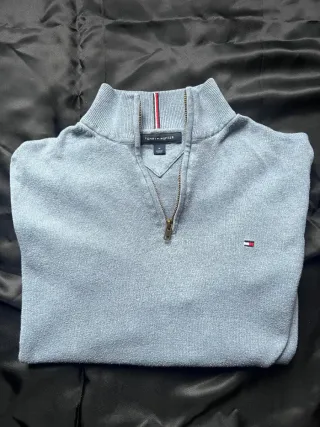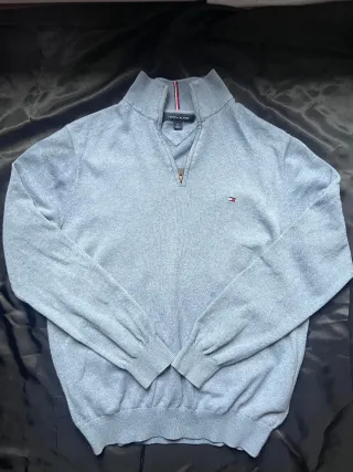 Jersey original de Tommy Hilfiger en color gris claro con media cremallera en el cuello. Diseño clásico con el logo bordado en el pecho. Muy cómodo y fácil de combinar para uso diario. 🔹 Talla: M 🔹 Color: Gris claro 🔹 Cuello: Alto con media cremallera 🔹 Logo: Bordado en el pecho 🔹 Estado: Buen estado 📦 Envío rápido 💬 Respondo rápido 🔒 Prenda revisada antes del envío