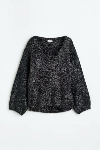 Jersey de H&M con un toque brillante. - Diseño de punto mullido. - Escote en V. - Mangas largas abullonadas.