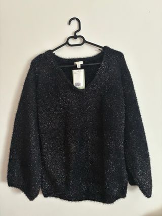 Jersey H&M brillos negro y plata Talla M