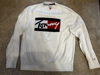 Jersey de Tommy Jeans de Tommy Hilfiger talla M, de manga larga con un diseño llamativo en el pecho. - Cuello redondo. - Puños y bajo acanalados. - Detalle de logo en la manga.