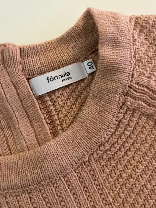 Jersey de punto fino para mujer con un diseño texturizado. Usado una o dos veces perfecto estado rosa empolvado largo 58cm ancho 40cm - Cuello redondo. - Manga larga. - Puños y bajo acanalados. - Detalle de trenzas y topitos en relieve.