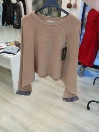 Jersey de punto fino con un diseño moderno y elegante. Las mangas anchas le dan un toque de estilo. - Detalle de pedrería en los puños.