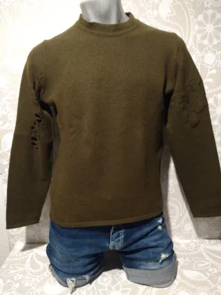 Jersey de punto con cuello en V y manga larga. -Talla S - Tejido de punto. - Diseño con escote en pico. - Puños y bajo con acabado festoneado. -Los dos 5 euros o 3 cada uno
