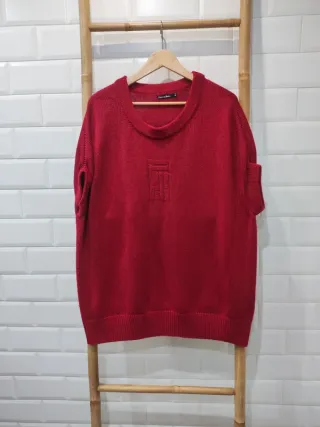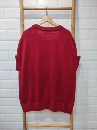 Jersey de punto en color rojo, con un diseño moderno y elegante. - Cuello redondo. - Manga corta. - Detalle de relieve en la parte frontal.